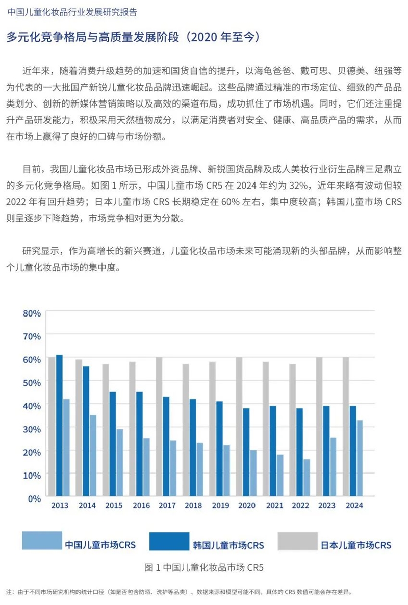 《報(bào)告》指出,兒童化妝品行業(yè)發(fā)展,在政策維度實(shí)現(xiàn)全生命周期監(jiān)管體系的構(gòu)建與深化,在法規(guī)維度實(shí)現(xiàn)技術(shù)標(biāo)準(zhǔn)與合規(guī)要求的全面升級(jí),在市場(chǎng)維度實(shí)現(xiàn)規(guī)模擴(kuò)張與結(jié)構(gòu)升級(jí)的雙重演進(jìn)。經(jīng)過起步探索、初步發(fā)展與競(jìng)爭(zhēng)萌芽、高速發(fā)展階段,現(xiàn)已進(jìn)入多元化競(jìng)爭(zhēng)格局與高質(zhì)量發(fā)展階段,兒童化妝品政策與法規(guī)環(huán)境不斷優(yōu)化,市場(chǎng)規(guī)模不斷攀升,競(jìng)爭(zhēng)格局呈現(xiàn)出國內(nèi)外品牌共存的勢(shì)態(tài),如以海龜爸爸等為代表的新興國貨品牌為不斷涌現(xiàn),憑借更為靈活的市場(chǎng)策略和創(chuàng)新的產(chǎn)品理念,通過科研創(chuàng)新、質(zhì)量風(fēng)險(xiǎn)管理、差異化定位等方式,市場(chǎng)競(jìng)爭(zhēng)力不斷提升。據(jù)不完全統(tǒng)計(jì),2025年,兒童防曬市場(chǎng)實(shí)現(xiàn)跨越式增長(zhǎng),線上兒童防曬產(chǎn)品GMV達(dá)18.3億,海龜爸爸線上兒童防曬產(chǎn)品GMV體量達(dá)8.2億,占據(jù)兒童防曬行業(yè)半壁江山。